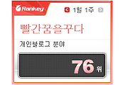 | 빨간꿈을꾸다 블로그, 랭키순위 76위 달성기 (12) | 2014.01.17 |