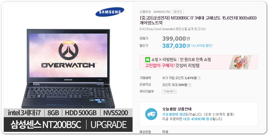 그런데......네이버에서 해당 모델을 검색해보니 남들은 더 싸게 팔고있네요?!
