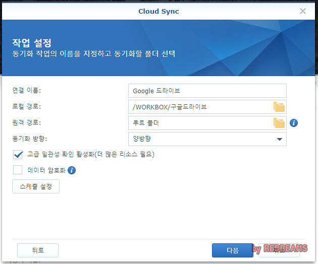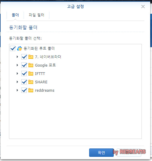 드디어 구글드라이브의 동기화 세팅이 완료되었습니다. 이제 구글드라이브에 올려진 자료가 매일매일 내 NAS서버로 백업이 됩니다. 드롭박스 등 다른 클라우드도 아래 + 버튼을 통해 언제든지 손쉽게 추가할 수 있으니 내가 이용하는 모든 클라우드의 자료를 NAS로 백업해보시기 바랍니다.