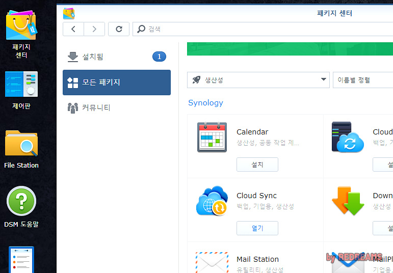 시놀로지 나스 DSM 패키지센터에 보시면 'Cloud Sync' 서비스가 존재합니다. 패키지를 설치합니다.