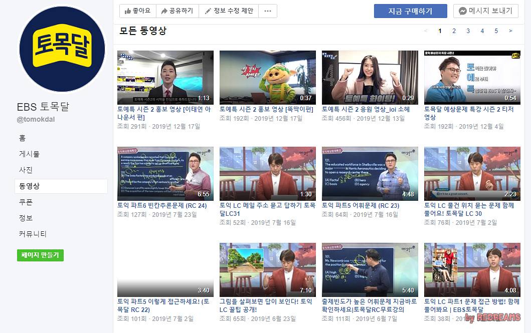 아래와 같이 페이스북을 둘러보던 중 제가 좋아하는 소혜와 EBS뚝딱이가 있는 페이지에 들어왔습니다. EBS토목달 페이지인데요. 이곳에 있는 영상을 다운로드 받아보도록 하겠습니다.