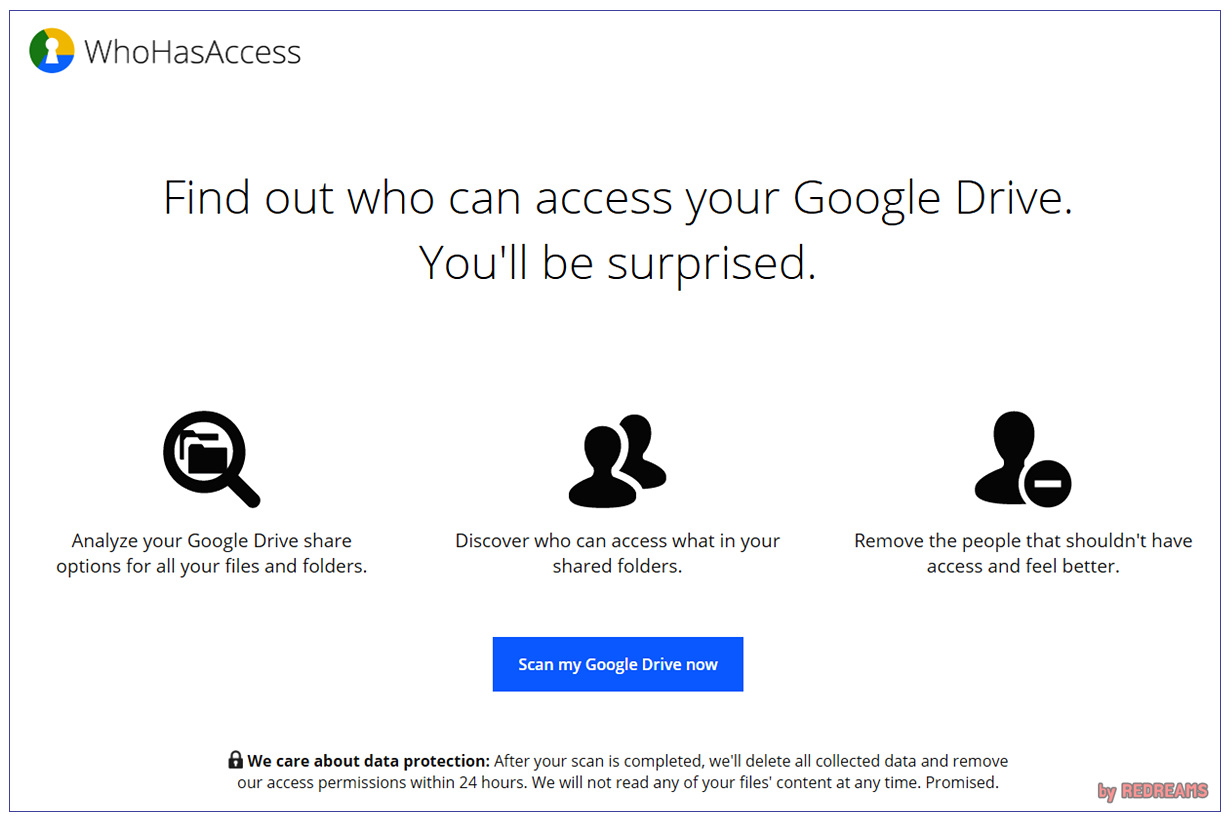 하지만, 오늘 소개해드릴 툴만 있다면 내 구글문서에 접근할 수 있는 사용자를 찾는 것이 아주 쉬워질 것 입니다. 바로 WHO HAS ACCESS 라는 서드파티 툴로 말 그대로 누가 접근권한을 가졌는지 알려주는 툴입니다. 이 서비스는 무료로 제공되며 회원가입은 물론 별도의 프로그램 설치도 필요하지 않습니다. 그저 구글 문서를 분석할 수 있도록 권한만 열어주면 됩니다.