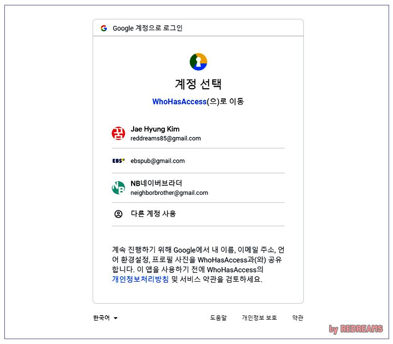 당연하겠지만 구글 계정을 선택하게 됩니다. 대부분의 경우 내 개인계정으로 구글문서를 생성하였을테니 내 구글 계정을 선택해줍니다.