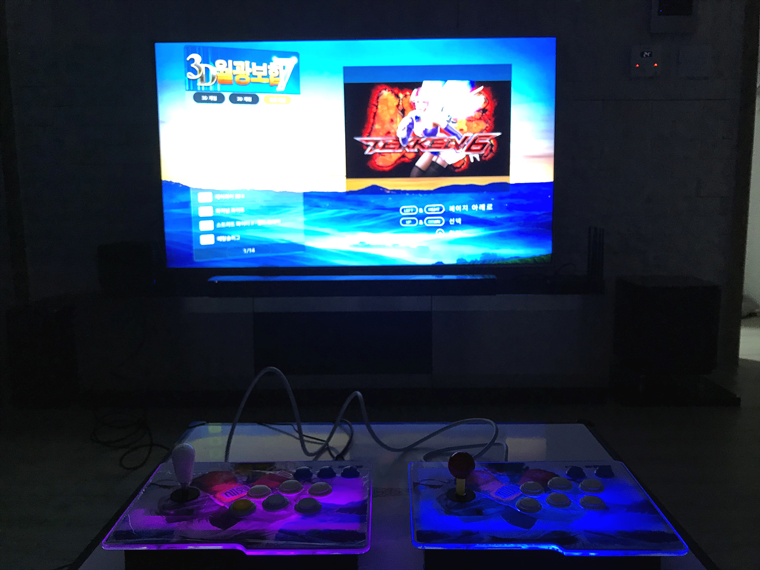 전원 버튼을 눌러봅니다. (당연히 TV는 HDMI 외부 입력으로 되어있어야겠죠?) 신나는 음악과 함께 3D 월광보합 판도라박스7이 고화질로 등장합니다. 아래 TV는 LG 스마트 TV로 65인치짜리입니다.