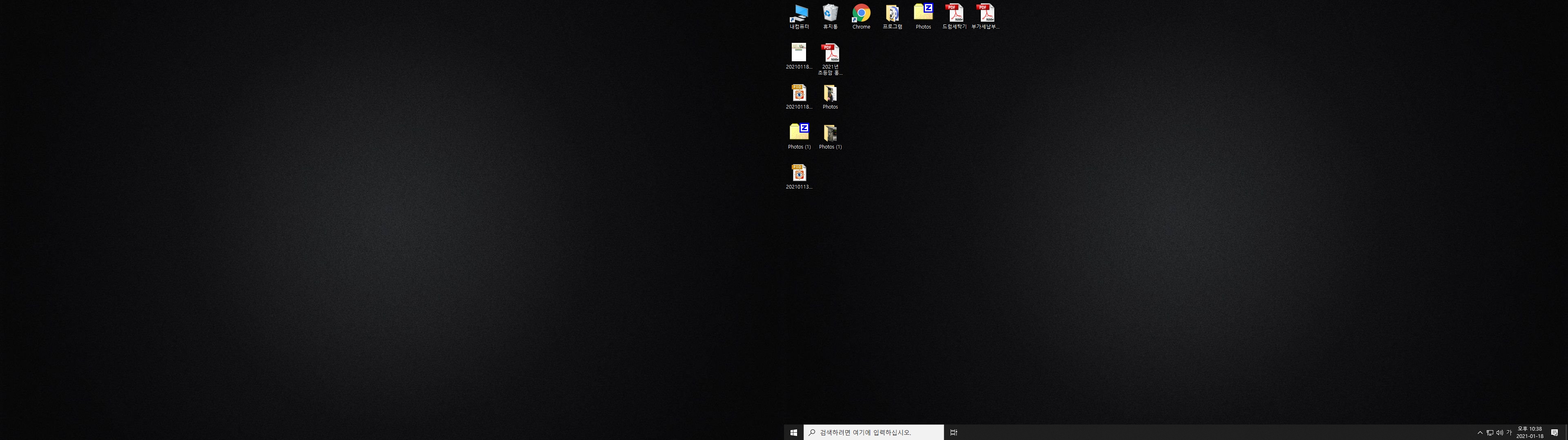 오잉~ 탐색기는 물론 아무런 프로그램이 띄워지지 않은 새로운 화면이 보입니다. 원래 바탕화면에 존재했던 일부 파일들은 모든 가상 데스크톱에서 기본으로 공유가 되기에 보여지지만 그 외 모든 프로그램들은 화면에서 사라졌습니다. 바로 이 곳에서 원하는 인터넷 창, 사진,동영상,탐색기, 프로그램 등을 실행하시면 됩니다.