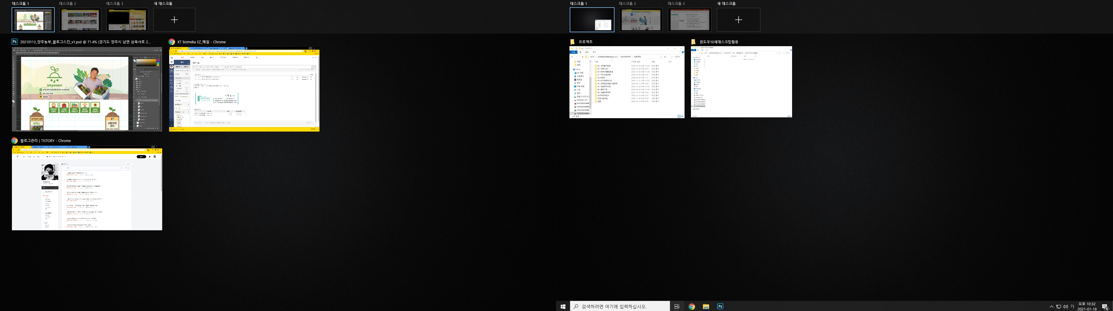 1번 데스크톱 : 포토샵 작업 + 업무 탐색기