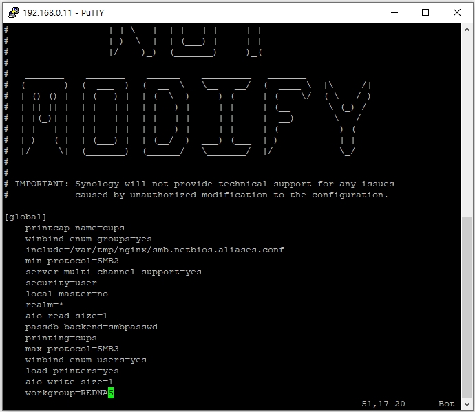 이제 시놀로지 nas의 설정을 변경할 수 있는 편집기가 실행되었습니다.