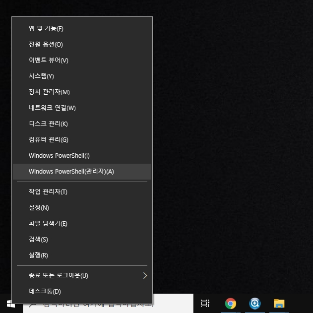 여기서 Windows PowerShell(관리자)를 클릭해줍니다.