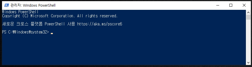 아래와 같이 파워쉘화면이 나옵니다.