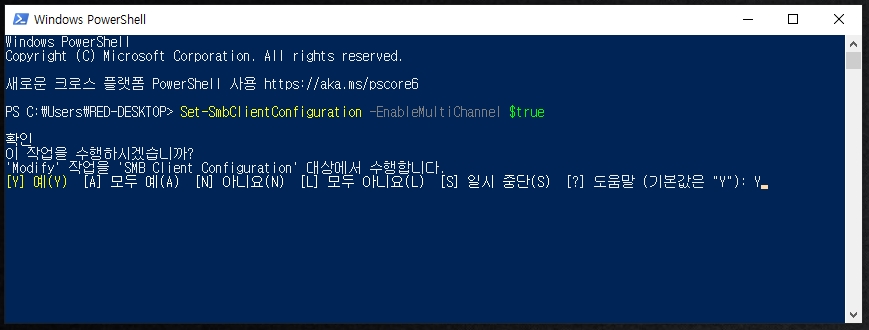 파워쉘 화면에서 아래의 멀티채널 활성화 명령어를 입력합니다.