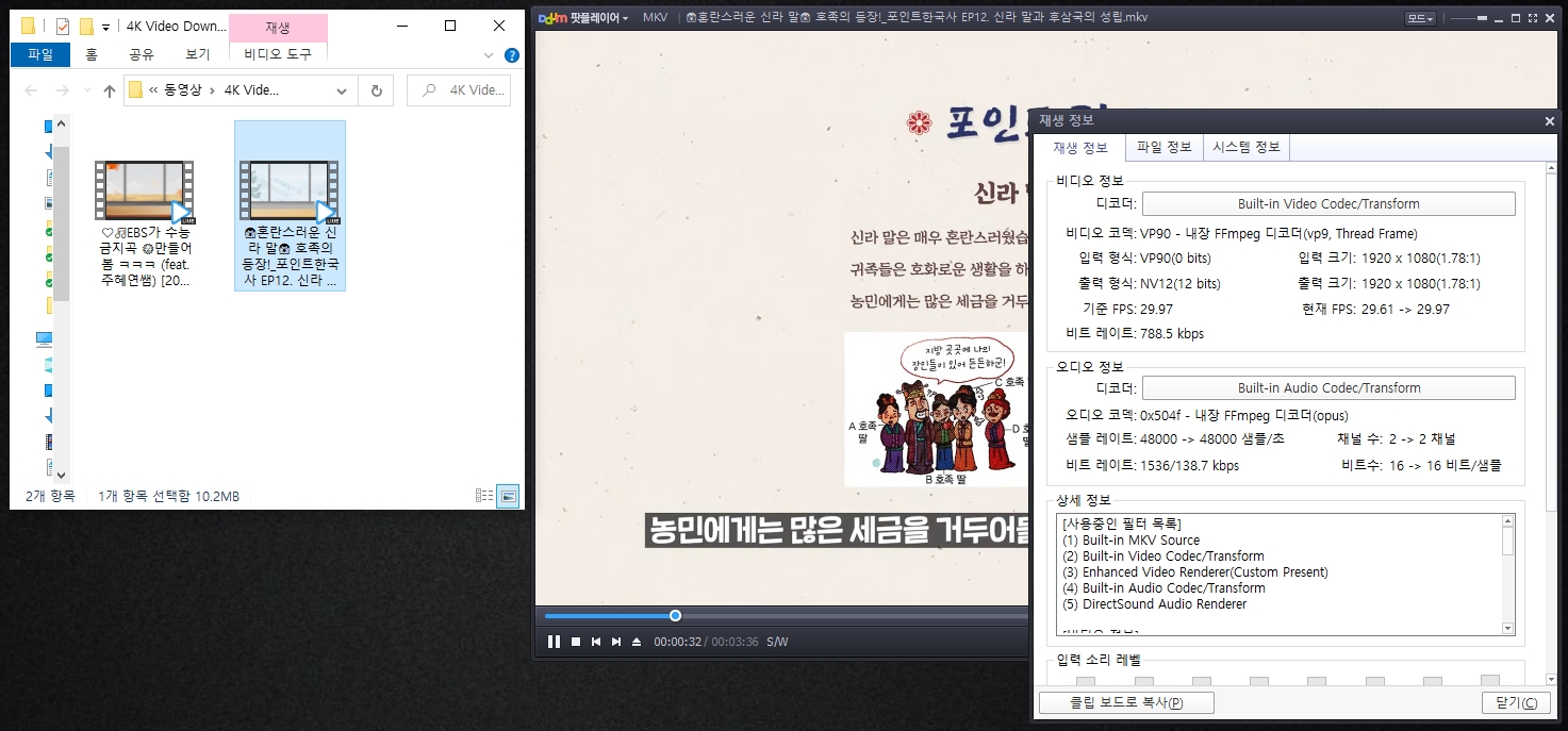 영상 속성을 확인해보니 약 2시간 분량의 영상이 FHD 고해상도로 아주 잘 다운로드 받아졌습니다. 파일명도 깨지지 않고 유튜브에 올려진 그대로 받아져서 파일확인도 매우 수월하네요.