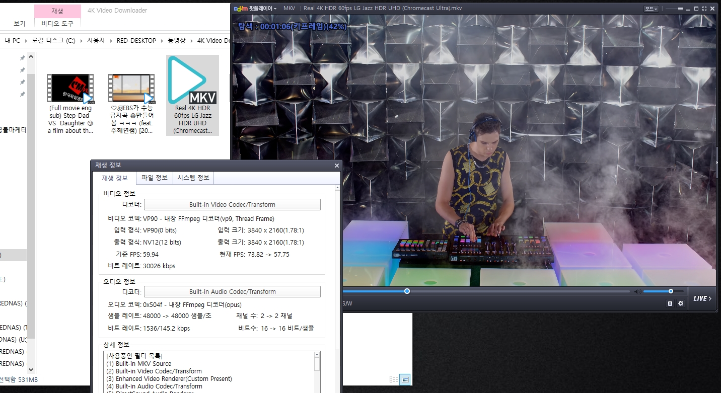 마지막으로 4K영상도 정말 다운로드 받아지는지 테스트해봐야겠지요? 앞서 설명드린 것처럼 프리미엄 버전은 프리미엄 오디오엔 제약이 있었지만 4K 다운로드에는 제약이 없었습니다. 사실 음원만 별도로 추출해서 이어폰으로 재생할 목적이 아니라면 일반적인 오디오 비트레이트인 128kbps만 되어도 영상을 감상하는데 아무런 불편함이 없을 것입니다.