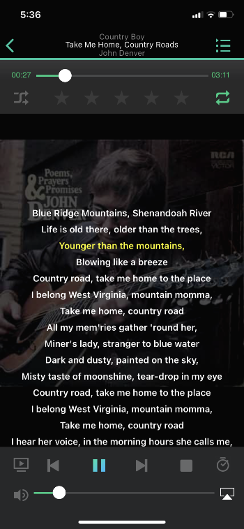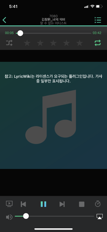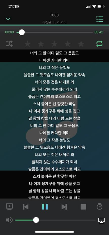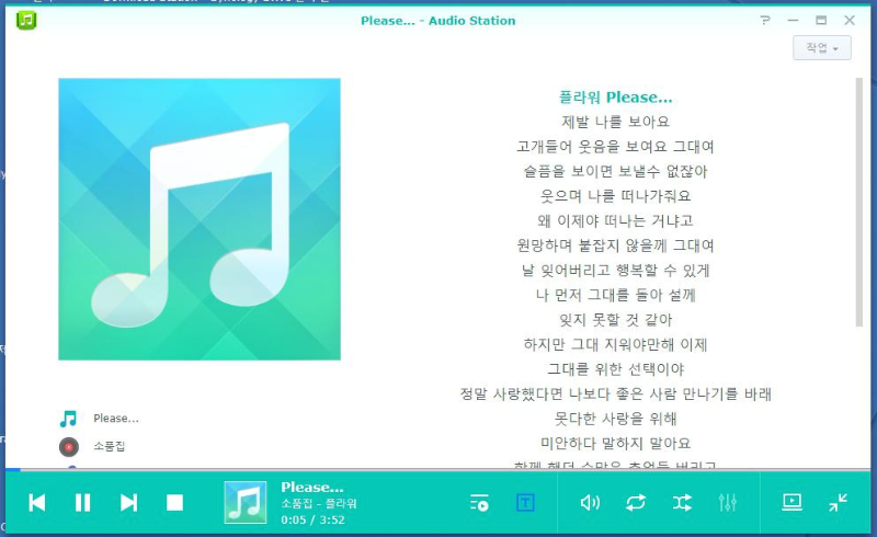 모바일 오디오 스테이션으로 재생을 해봐도 결과는 똑같습니다. 플러그인 설치 전에는 가사가 없었지만 이제부터는 가사가 자동으로 불러와집니다.