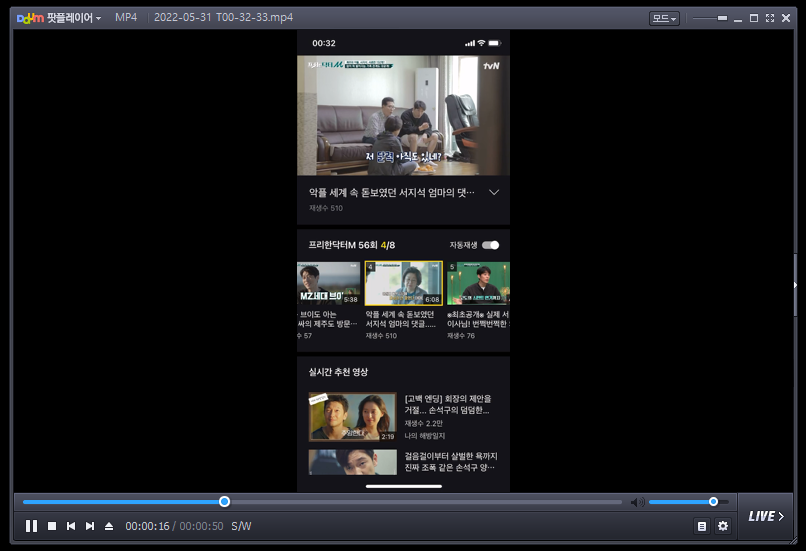 론리스크린은 위에서 보시는 것처럼 하단의 녹화버튼을 통해서 아이폰 화면을 녹화하는 것도 가능합니다. 아래와 같이 총 50초 정도를 녹화해보았는데 끊김 없이 정상적으로 잘 녹화가 되었습니다.
