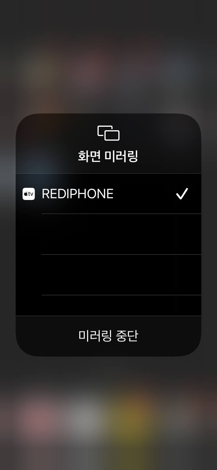 아이폰(또는 아이패드)에서 화면 미러링 버튼을 클릭하면 노트북에 연결할 수 있는 기기가 뜹니다. 바로 클릭을 해줍니다.