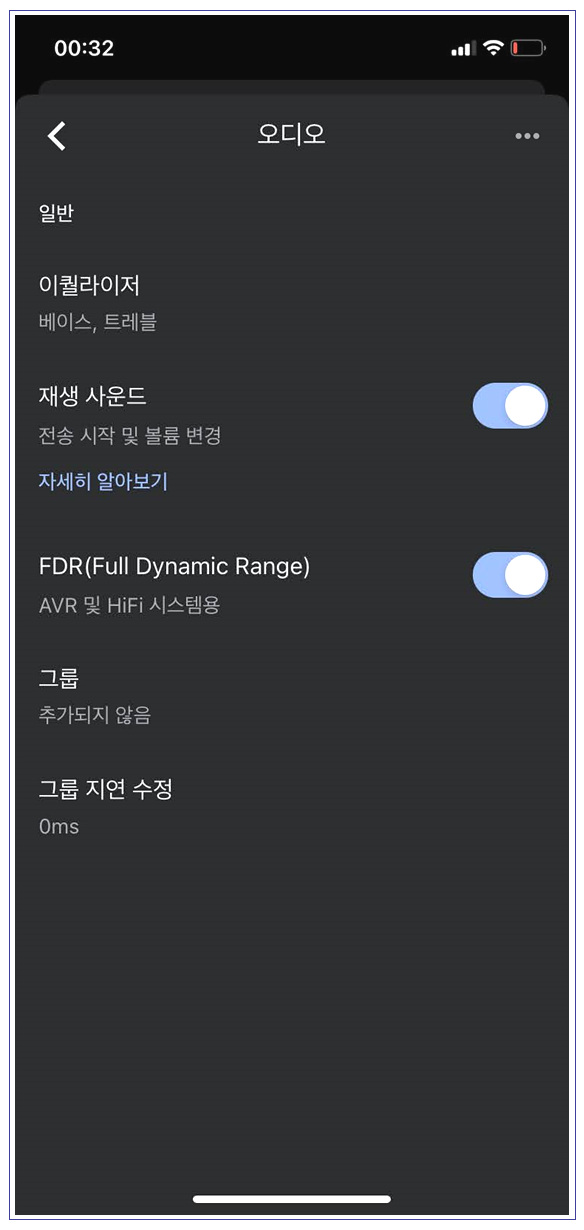 설치가 완료되면 구글 미니를 설치한 것처럼 스피커 유형으로 세팅이 완료됩니다. 오디오 기기이므로 이퀄라이저, FDR(Full Dynamic Range) 등 오디오 세팅도 가능합니다.