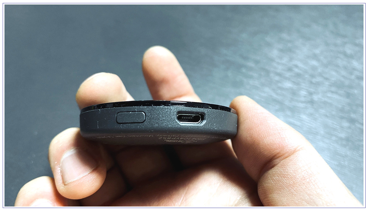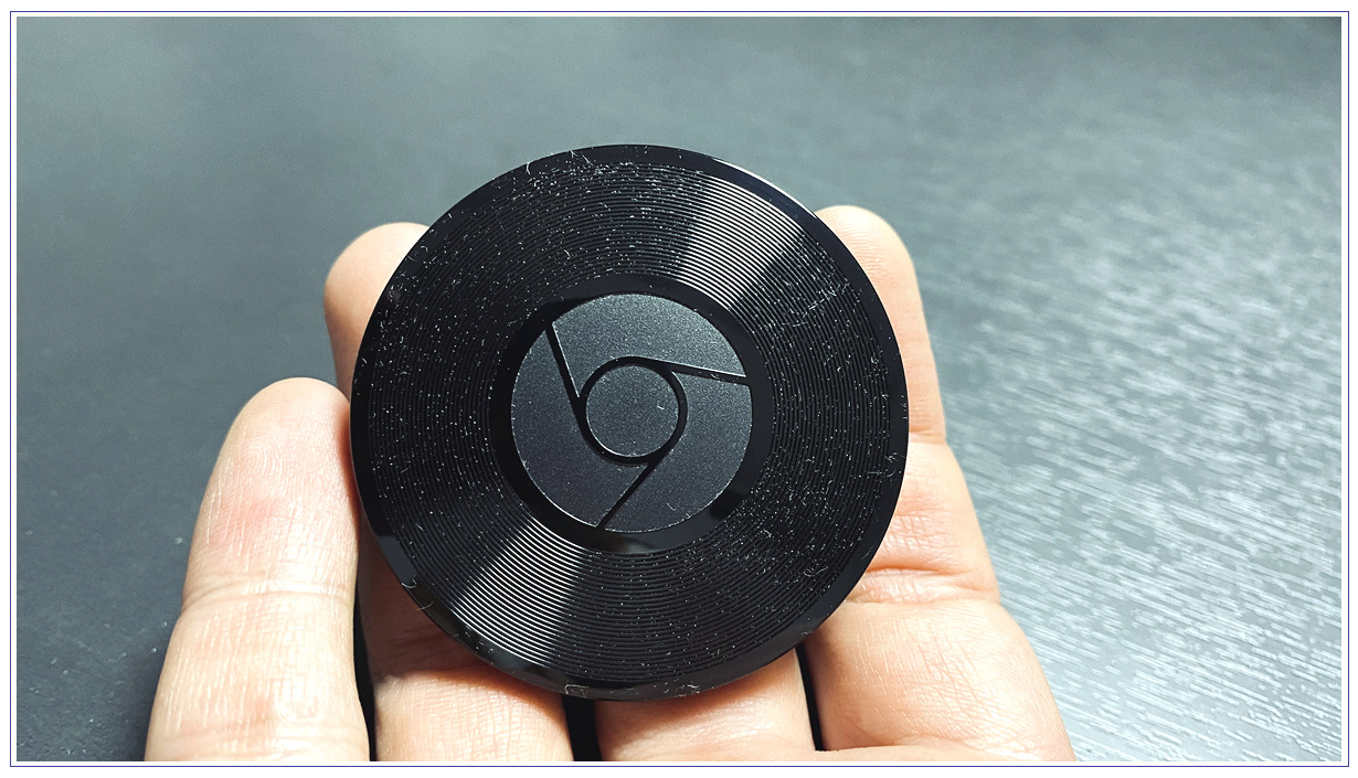 크롬 캐스트 오디오 본체는 아래 그림처럼 아주 작은 동그란 플라스틱 모양을 하고 있습니다.