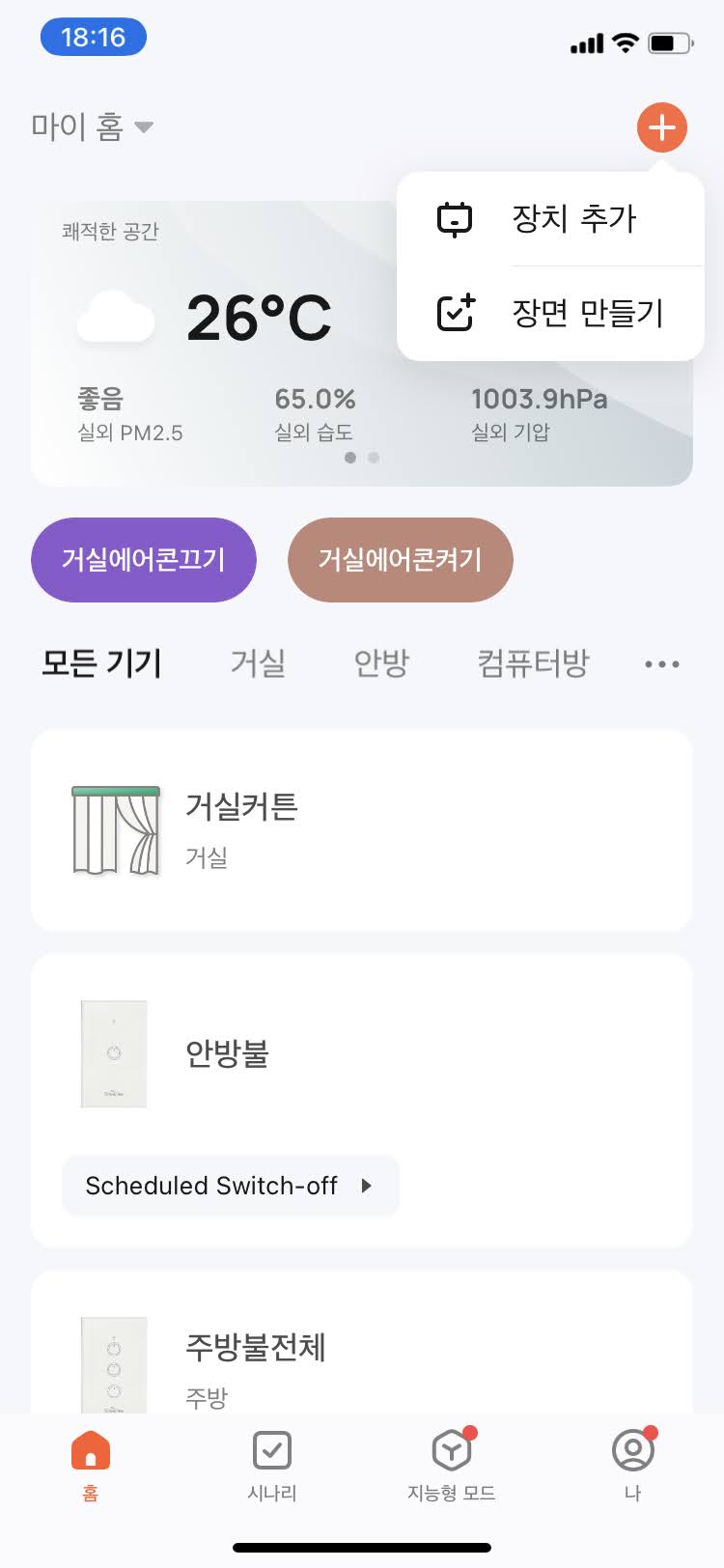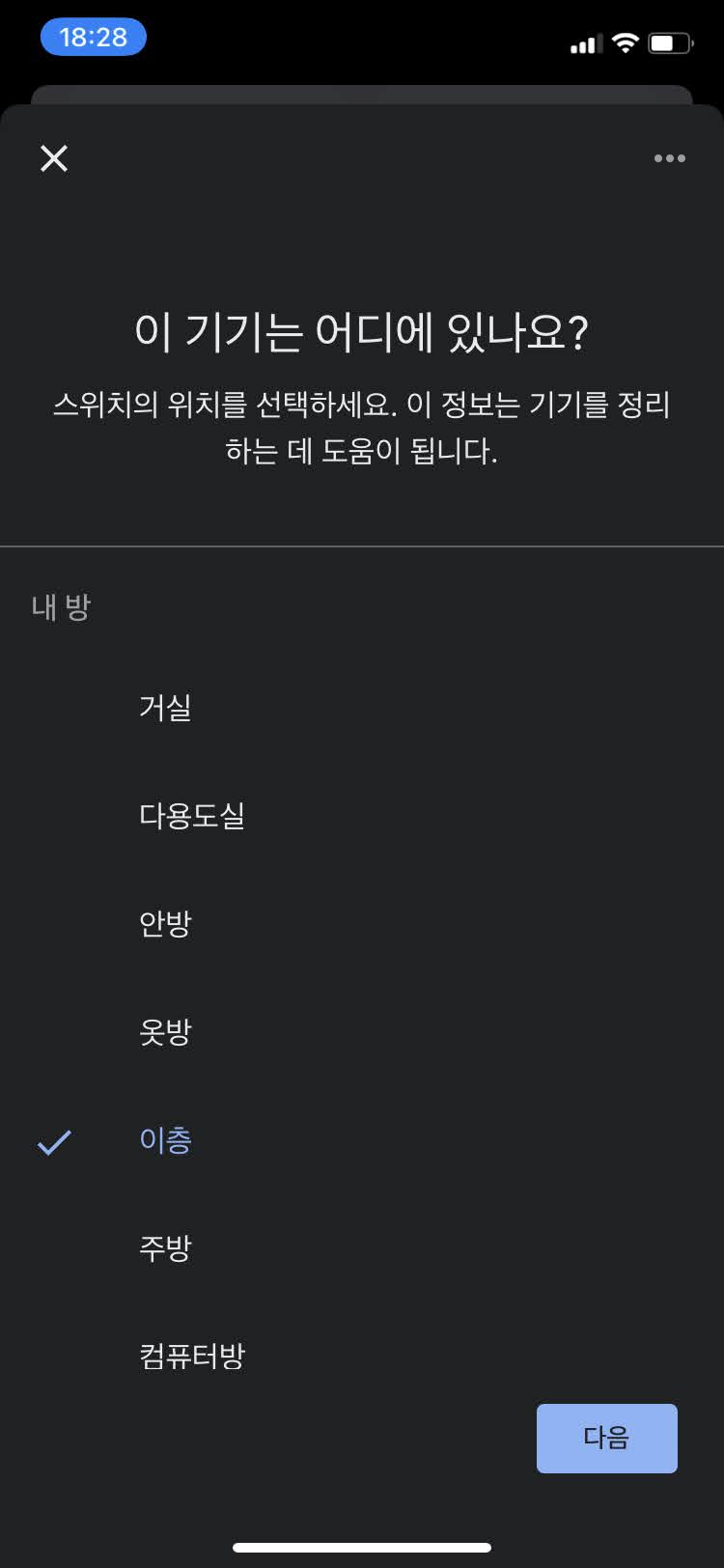 하지만 우리들의 진짜 목적은 구글 홈, 스마트싱스와의 연동이겠죠? 필자는 구글 홈을 메인 플랫폼으로 활용하고 있으니 구글 홈에 연동하는 방법을 알아보겠습니다. 구글 홈 연동방법은 매우 쉽습니다. 필자의 경우 이미 TUYA SMART앱과 구글 홈이 연동이 되어 있는데 이 경우 구글 홈 앱을 실행하는 것만으로 이미 스위치가 자동으로 연동이 되어 있습니다. 그저 버튼을 클릭해서 방에 추가하기만 하면 구글 홈과의 연동도 끝난 것입니다.