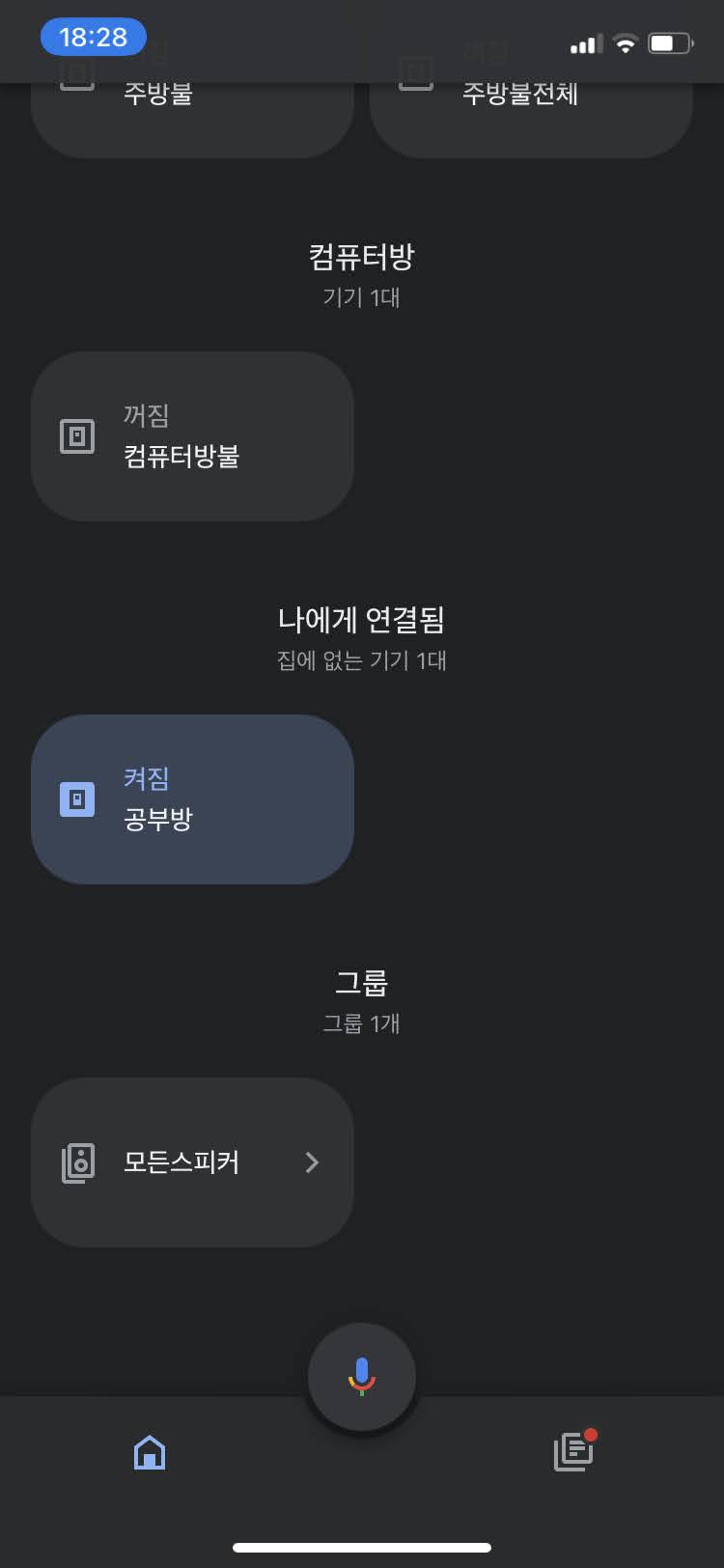 구글 홈에 내가 설치한 등이 전부 잘 노출됩니다. 만약에 3구짜리 스위치를 구매했다면 아래 '주방'에서 보이는 것처럼 '주방 불전체'기능도 있고 각각 제어도 가능합니다.