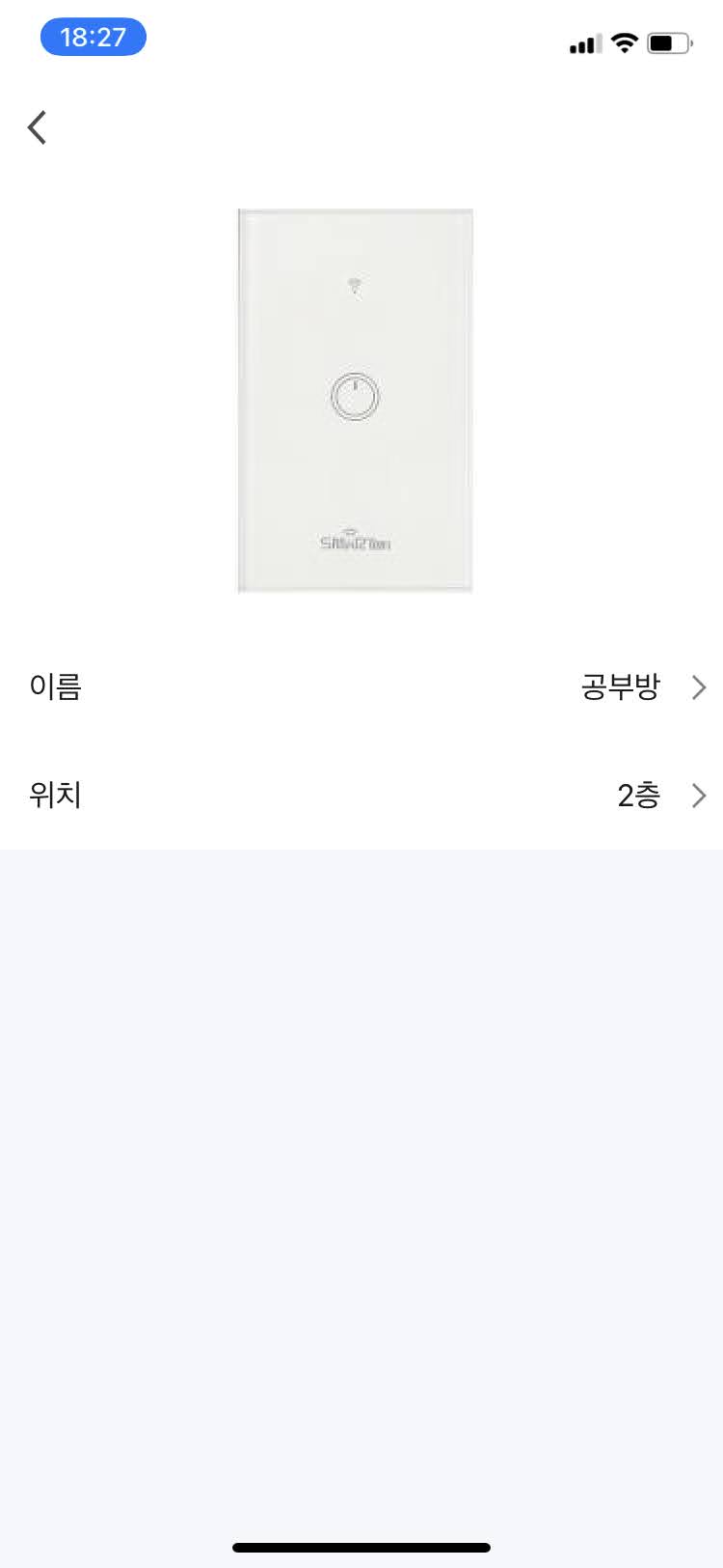 장치가 추가되면 아래 그림처럼 제품명이 표시가 되는데요. 여기서 +버튼을 눌러서 장치의 이름, 위치를 지정할 수 있습니다. 구글 홈에서 연동할 때 이 스위치 장치 이름이 연동되니 음성으로 부를 스위치 이름으로 잘 지정해줍니다.
