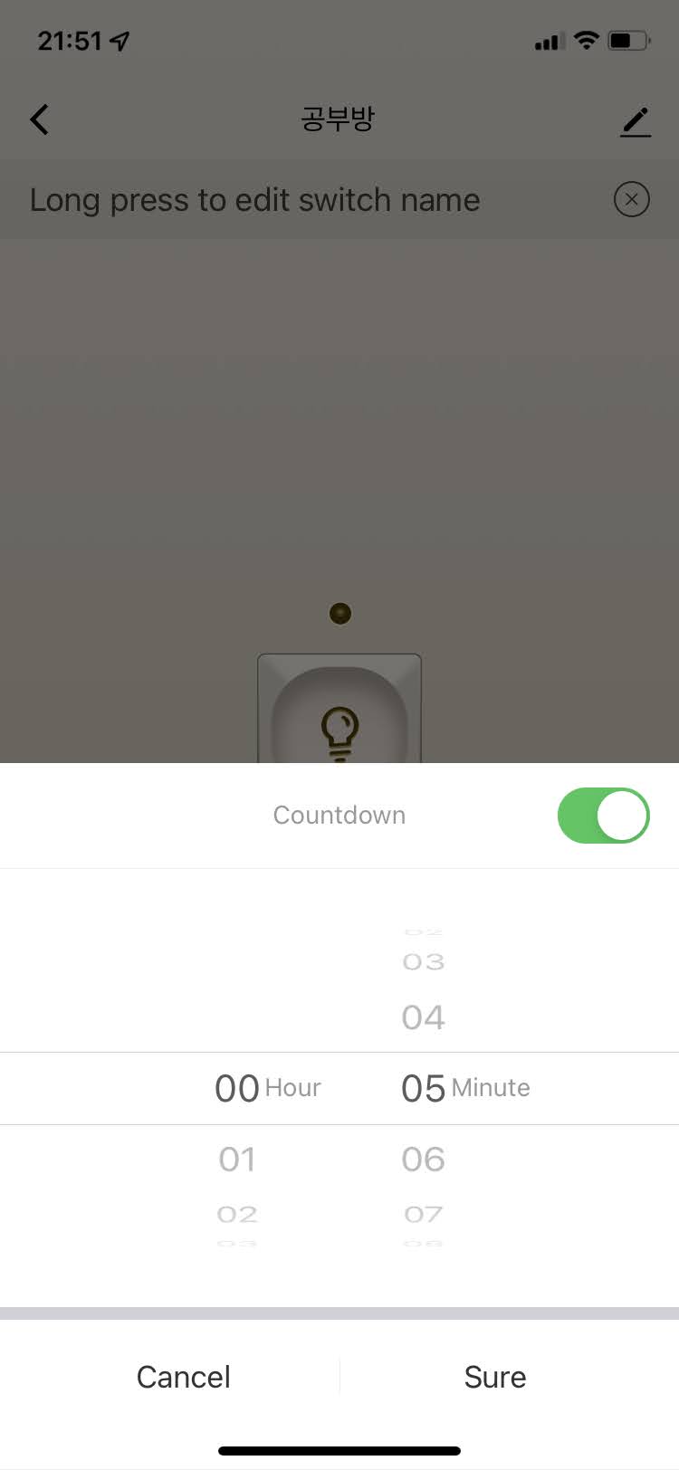 투야 스마트 앱에서도 사실 음성인식을 제외한 모든 기능을 제공해주고 있습니다. 타이머 기능을 통해 일회성 또는 반복적인 on/off실행이 가능하며 마찬가지로 카운트다운 기능을 통해 특정 시간 이후에 on/off 제어도 가능합니다.