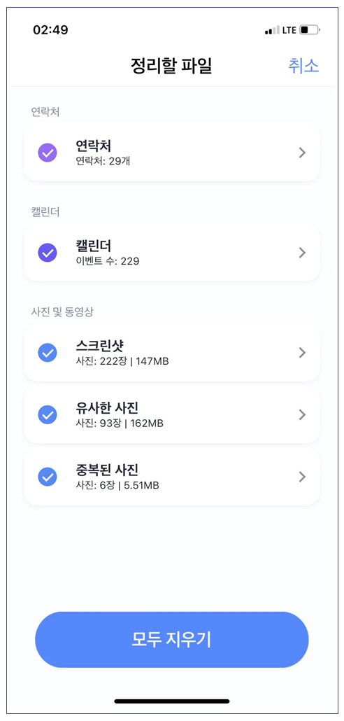 많은 아이폰 유저분들은 주소록 중복 생성의 문제와 함께 사진 중복 문제를 경험할 것입니다. 앞서 설명드린 '리멤버'같은 명함 등록 서비스를 이용하거나, 외부 주소록 연동 과정에서, 아이클라우드 백업 및 복원 과정에서, 각종 클라우드 서비스 또는 캘린더와의 연동 과정에서 주소록과 사진, 일정, 메모 등이 중복될 가능성이 너무너무 많기 때문인데 이러한 상황에서 스마트 클리너 앱에서 제공하는 또 다른 파일 정리 기능은 충분히 도움이 될 것입니다.