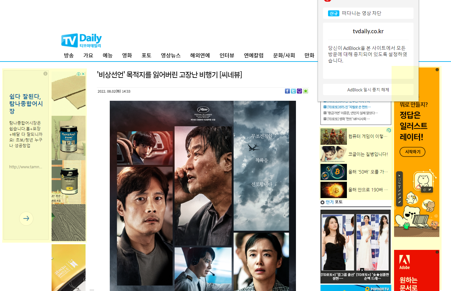 ADBLOCK 확장 프로그램을 설치하는 것만으로 이러한 광고창이 대부분 사라집니다. 위와 똑같은 페이지인데 광고를 총 23개 차단했다고 나오네요. 물론, 이 광고 차단은 홈페이지에서 직접 노출하는 광고는 제거되지 않고 우리들이 흔히 말하는 반응형 또는 리타겟 광고 제거에 최적화되어 있습니다. 특히 엉뚱한 곳에서 나도 모르게 팝업창 공격을 받게 되는데 이러한 악성 광고 팝업 노출에도 매우 효과적이라 할 수 있겠습니다. ADBLOCK을 통해 광고 없는 웹서핑 즐겨보시기 바랍니다.