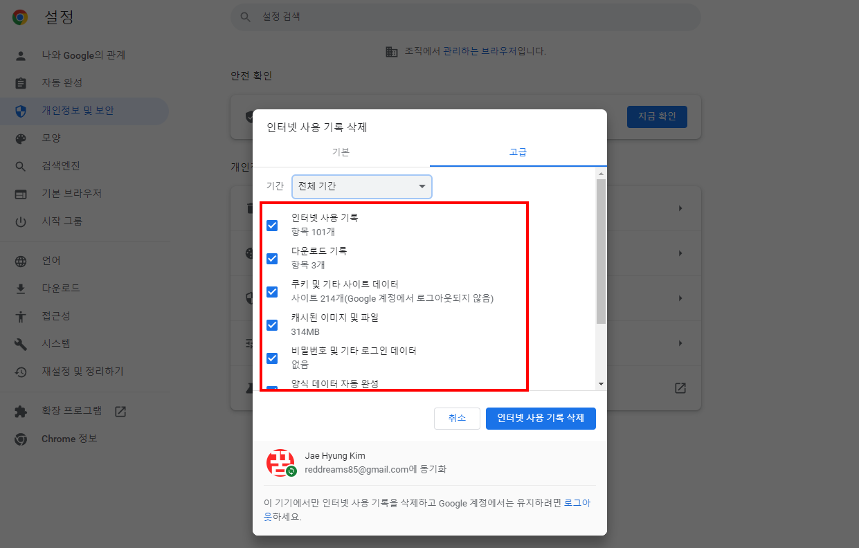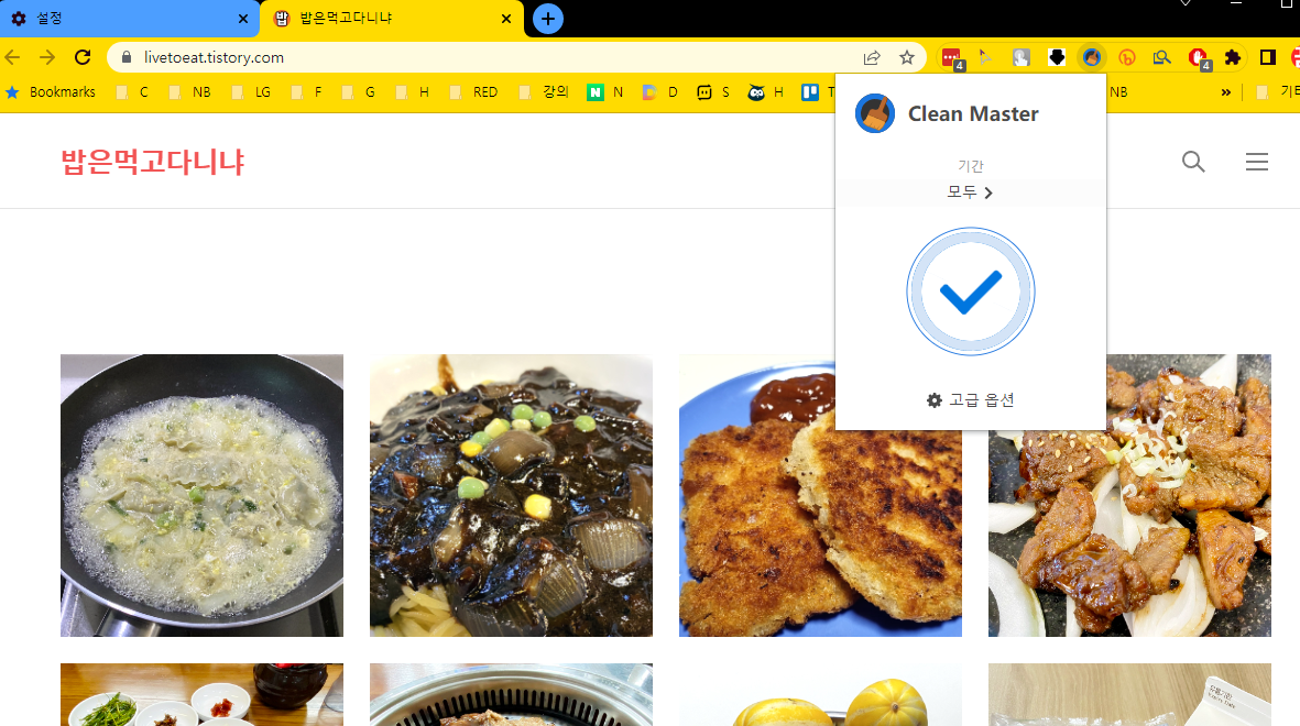 작동 방법은 아주 간단합니다. 확장 프로그램을 설치하고 필요할 때마다 확장 프로그램의 빗자루 버튼을 클릭하면 아래와 같이 자동으로 청소가 시작됩니다. 참고로, 모든 데이터 제거를 선택해놓고 청소를 시작하면 현재 로그인된 사이트 정보 역시 제거가 되어 세션이 종료가 되니 이 부분은 꼭 유의해주시기 바랍니다.