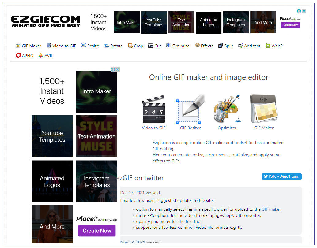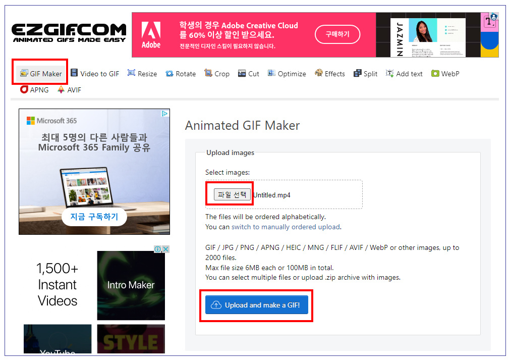 EZGIF.COM이라는 사이트에 접속을 합니다. 이곳은 GIF관련 다양한 기능들을 웹상에서 제공하는 곳으로 GIF 만들기부터 다양한 편집, 보정 서비스를 제공해주는 곳입니다. 당연하겠지만 회원가입도 필요 없고, 모든 기능도 전부 무료로 제공됩니다.