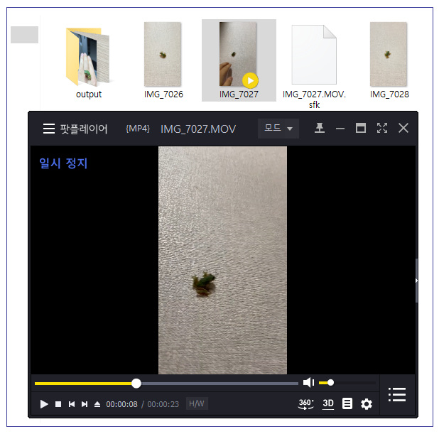 블로그에 올릴 목적으로 간단히 동영상을 하나 촬영했습니다. 바로 이전 콘텐츠로 올렸던 '청개구리'영상인데요. 7초 정도의 짧은 영상을 블로그에 올리고 싶어 졌습니다.