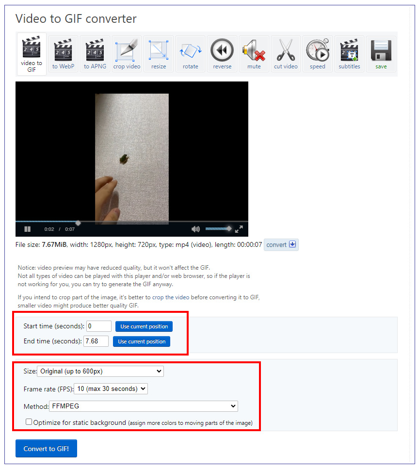 Online video to GIF converter