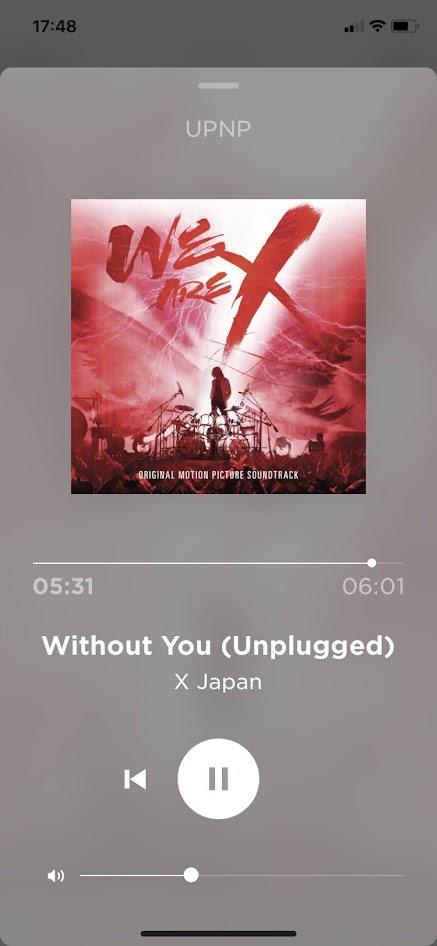 다음으로는 애플 에어플레이와 UPNP연결입니다. 일단 에어플레이는 애플 전용 규격인데 요즘 나오는 웬만한 스피커에는 전부 채택이 됩니다. 당연히 블루투스와 음질 측면으로도 비교할 수 없을 정도로 훌륭한 프로토콜이기는 하나 애플 환경에서만 최적화가 되고 안정성도 DLNA보다 좋음에도 그다지 추천하진 않습니다. 왜 추천하지 않냐면 기본적으로 사운드를 재생한다는 관점에서 AIRPLAY는 최대 16bit, 48khz로 제한되어 있지만 DLNA는 이론상 제약이 없기 때문입니다. UPNP는 네트워크 기술 규약이며 DLNA는 UPNP의 프로토콜을 사용했다는 인증이라 DLNA와 동일하게 이해하셔도 되는데 말 그대로 프로토콜이며 음원에 대한 제약은 아니다 보니 사운드바 900에서 지원이 가능한 음원파일이라면 그 어떤 무손실, 고음질 음원도 모조리 재생시켜 버립니다. 추가로, 에어플레이로 재생되는 정보는 아래 보시는 것처럼 아무것도 없지만, UPNP로 재생을 시킨 모습을 보면 재생시간, 타이틀, 가수는 물론 썸네일까지 지원됩니다. 당연하겠지만 엄청난 고용량 데이터를 주고받을 수 있는 프로토콜이기에 음질 외 음원 정보까지도 모조리 보여주기 때문입니다. (아래 Without You라는 음악은 6분짜리 무손실 음원 파일로 약 120M 용량입니다.)