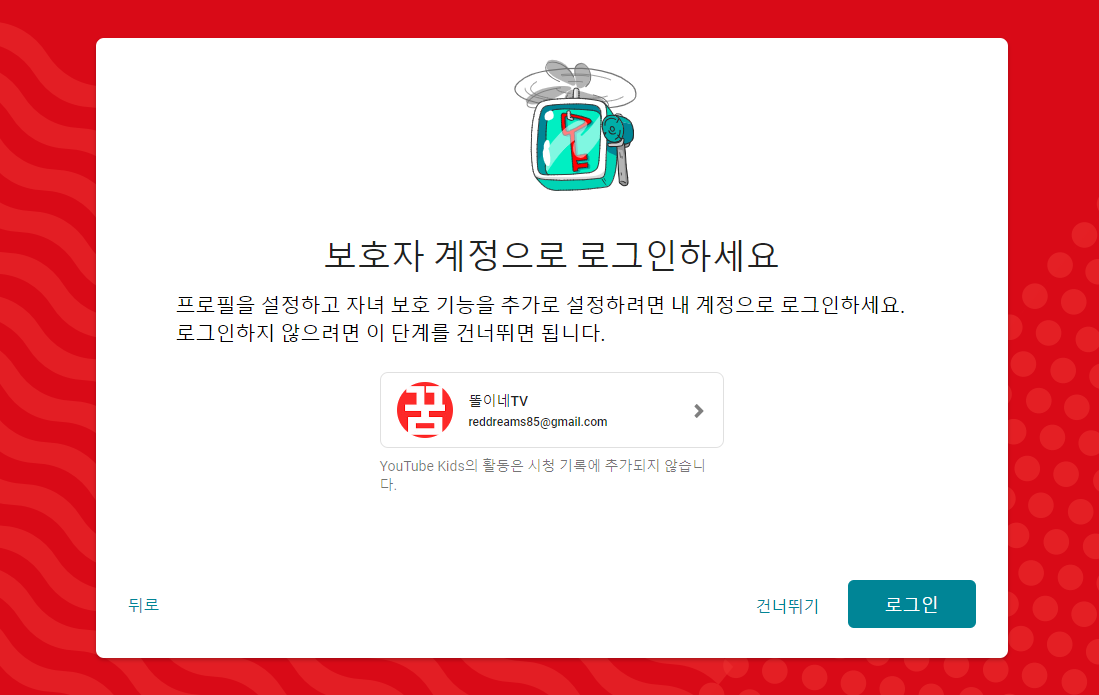 간단한 튜토리얼 확인 후 보호자 계정에 로그인합니다.