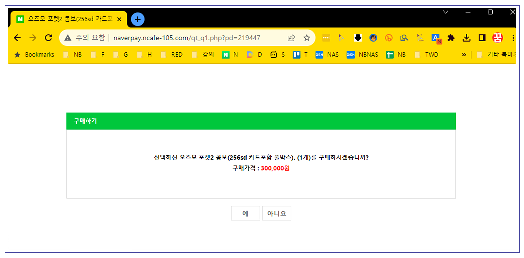 실제 네이버는 이런 구매하기 페이지가 없습니다. 그런데 여기까지 왔으면 더 이상 벗어나기 어렵겠죠 ㅠㅠ?