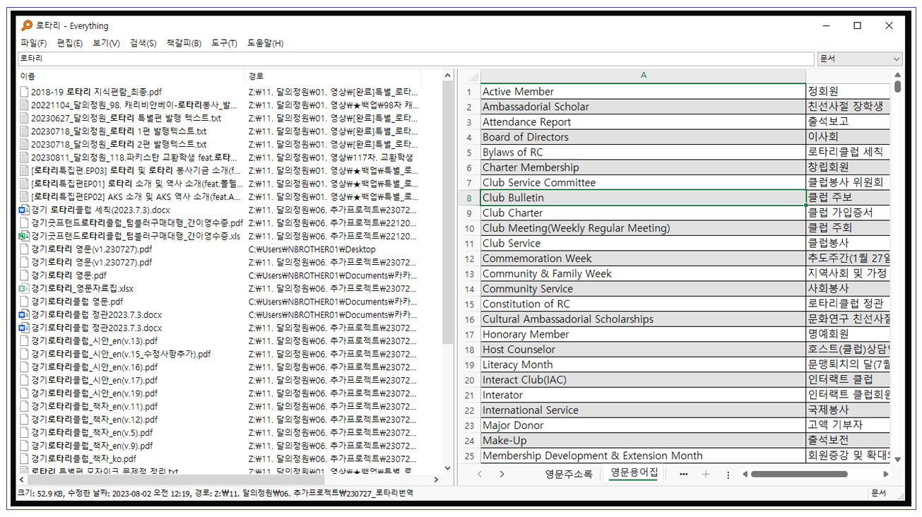 엑셀파일 역시 마찬가지입니다. 찾은 파일을 하나하나 더블클릭해서 이게 내가 찾고자 하는 자료가 맞나 고민할 필요없이 그냥 미리보기창에서 전부 다 볼 수 있습니다. 단순히 눈으로 보는 것이 아니라 엑셀, 메모, 워드파일은 더블클릭으로 실행하지 않더라도 아래와 같이 실제 문서 접근이 가능하기 때문에 특정 텍스트나 내용을 곧장 선택해서 복사하는 것도 가능합니다.