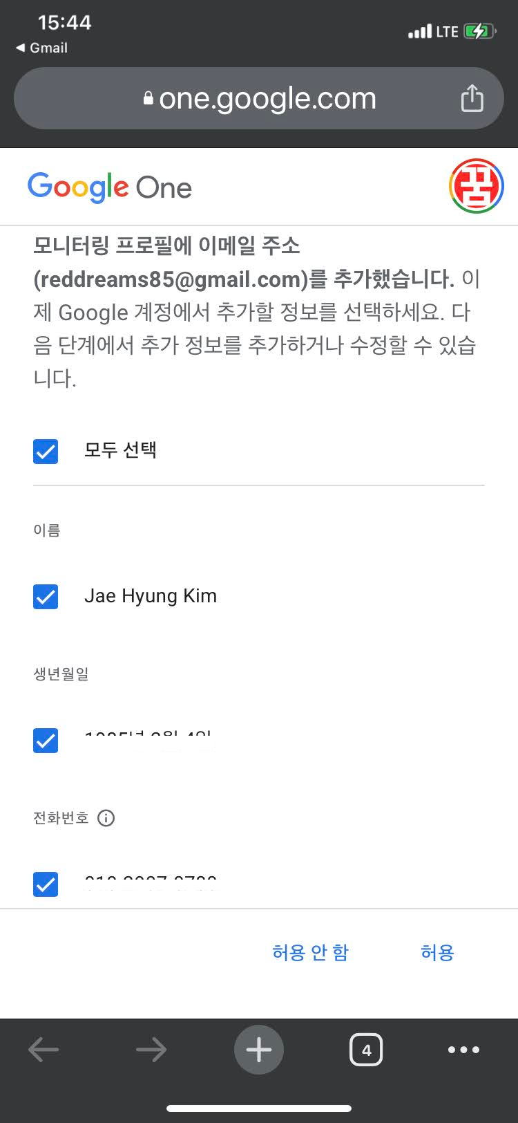 모니터링할 아이템을 선택하셔야 되는데요. 항목으로는 이메일주소, 이름, 생년월일, 비밀번호, 전화번호 등이 있습니다. 당연히 이 정보들이 어떤 다크웹에 노출되고 있는지 확인하기 위함이니 전체 선택을 눌렀습니다. 이제 구글이 내 개인정보를 가지고 다크웹들을 쭉 모니터링하면서 일치하는 정보가 있는지 모니터링을 하게 됩니다.
