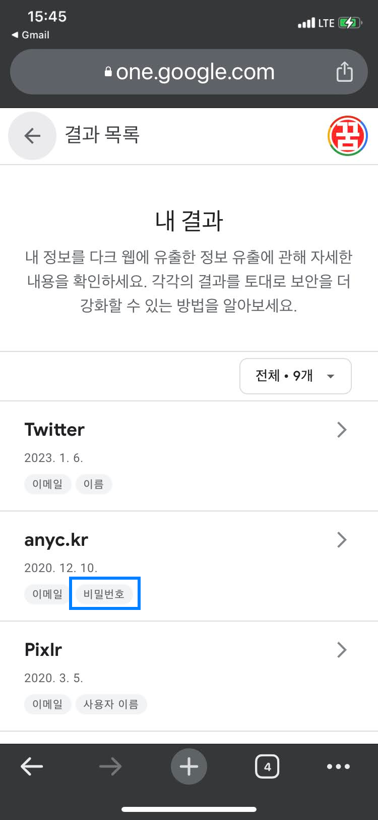 나머지도 다 점검을 해보았으나 다행히 9건 유출 중 유출이라고 불릴 만한 건은 위 1건뿐이었으며 이 마저도 오래전 일이고 당연히 현재 비밀번호와는 다르기 때문에 문제가 되지 않았습니다. 엄청난 불법사이트에서 내 개인정보가 노출되지 않아서 이 서비스의 효능을 더 직접적으로 알려드릴 수는 없겠지만 결과적으로 각종 개인정보와 불법사이트가 난무하는 이 세상에서 구글이 제공하는 다크웹 보고서는 분명 꽤나 큰 도움이 되는 서비스인 것은 확실한 듯합니다.
