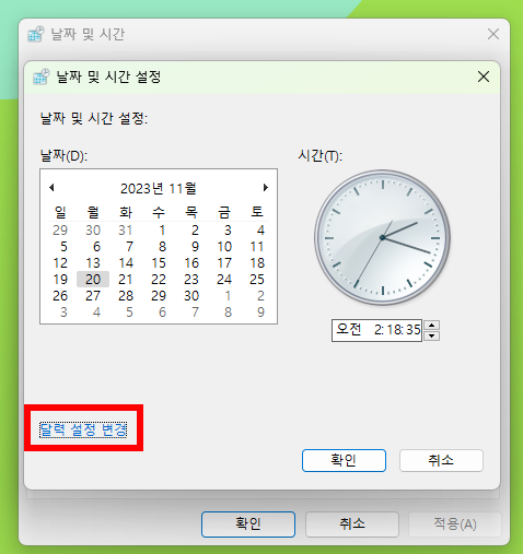 달력과 날짜가 나오면 여기서 또 '달력 설정 변경'을 클릭합니다.